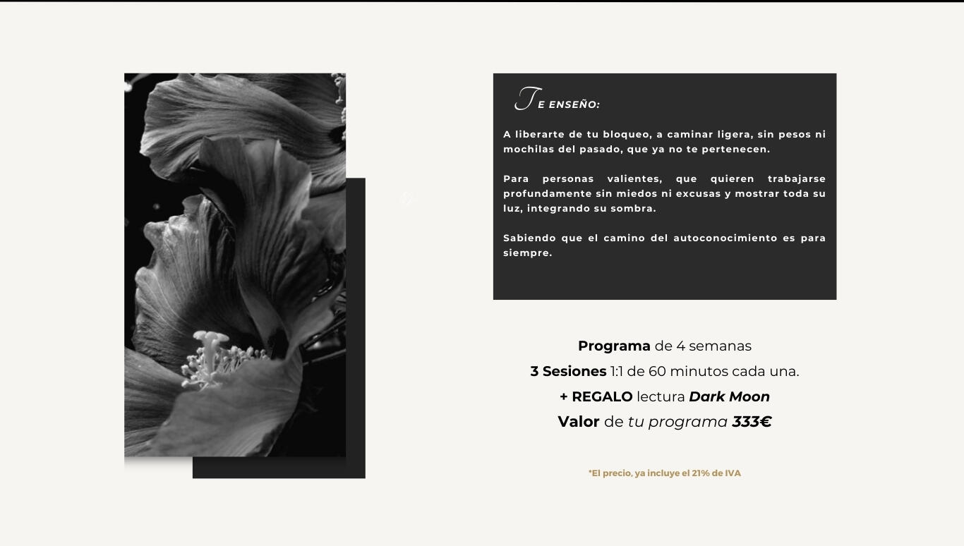 Ponte en contacto conmigo y juntos crearemos una transformación alineada con tu esencia